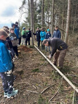 Chlapci si vyzkoušeli těžší část tehdejší každodennosti: pod dohledem instruktorů káceli menší stromy a řezali dřevo na polínka. Učili se pracovat s pilou i sekerou a rychle zjistili, že i krátká chvíle manuální práce na čerstvém vzduchu dá pořádně zabrat.