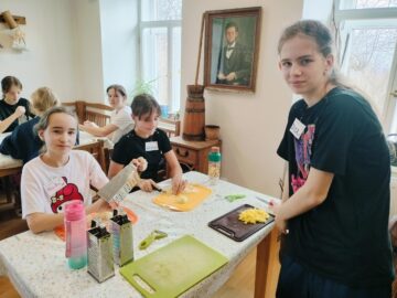 Dívky se mezitím pustily do tradičních kuchařských dovedností. Zadělaly těsto na domácí chléb, pekly ho v peci a k tomu připravovaly voňavou hrstkovou polévku – jednoduché a výživné jídlo, které dříve bývalo běžnou součástí venkovských kuchyní. Nebyla to jen práce, ale i různé staročeské hry, které děti hrály venku i v přírodě.