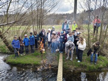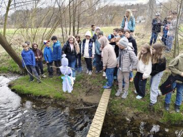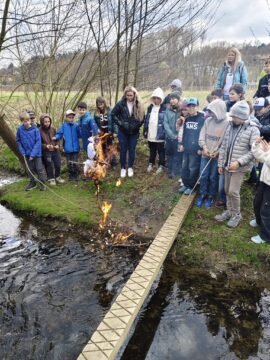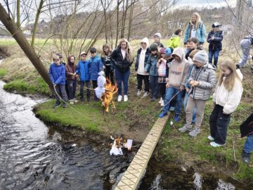 S hotovou Moranou se děti vydaly k nedalekému potoku, kde ji podle tradice symbolicky poslaly po vodě. Tímto zvykem přivítaly příchod jara. Nechyběl ani zpěv jarních písniček a společné hry na hřišti.